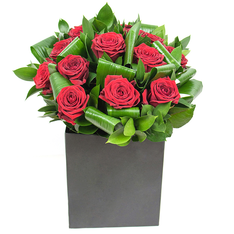 Discover the pinnacle of floral artistry with our majestic bouquet. A harmonious blend of bold red roses, complemented by graceful aspidistra leaves and chic ruscus, offers a visual symphony that will elevate any space. Every bloom is rigorously hand-selected to ensure pristine freshness, delivered as a budding marvel that unfolds into unforgettable beauty.